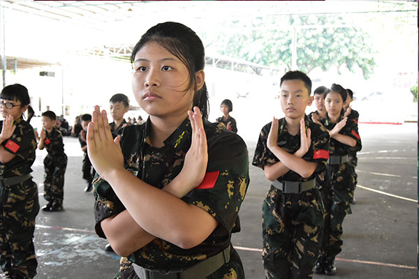 冬夏令营里都有安排军事训练,通过灌输军人的服从意识,令行禁止,结合训练的辅助,让孩子明白纪律的重要性,让孩子自我严格要求。