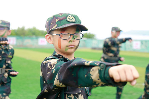 营地军事课程,以军体拳、队列训练、战术训练等军事类基础训练为主。严要求、高标准、重细节,以展示学员新面貌、增强学员体质、磨炼学员意志、提升学员信心、坚定学员信念为目标。