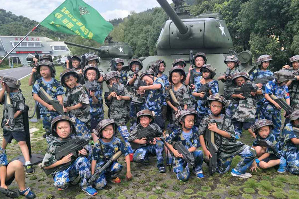 军事体验:参照部队建制,依据学生年龄和性别将小营员分班,进行封闭式、军事化管理、开展队形、队列、拉练、军体拳、枪械常识、国防教育等活动。