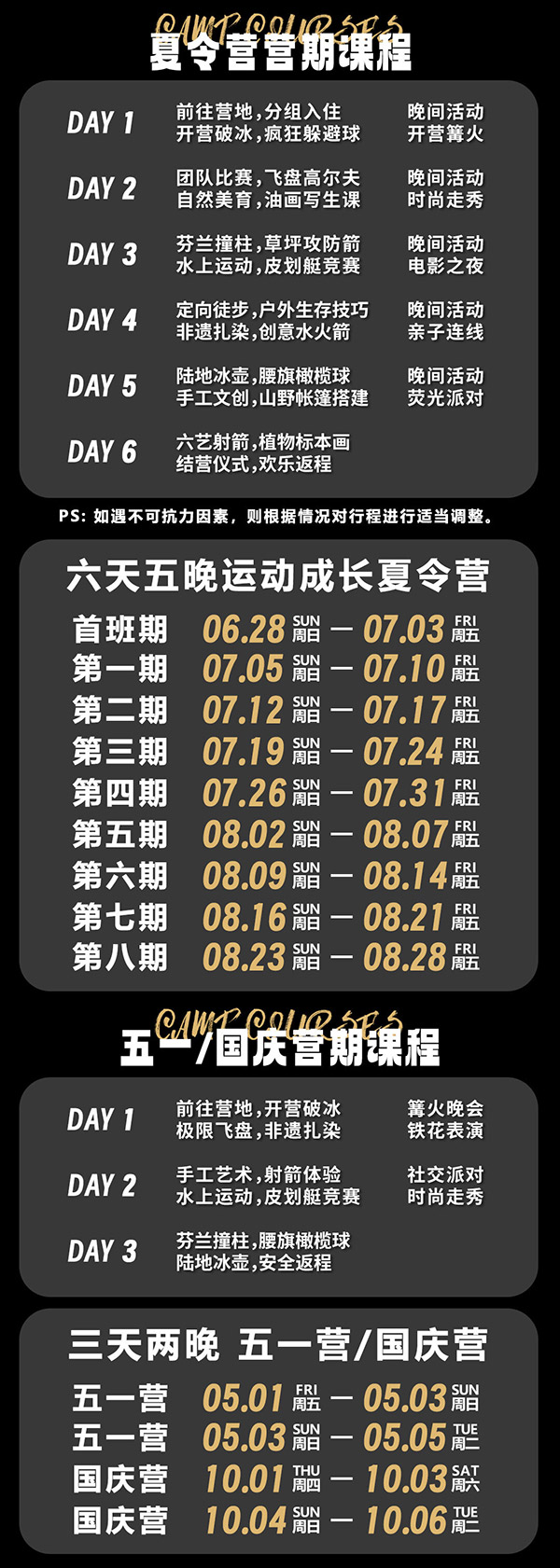 4、如营期未达到开团人数会提前10天通知取消。