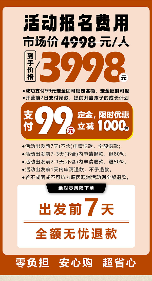 活动出发前7-3天(不含)内申请退款,退80%;
